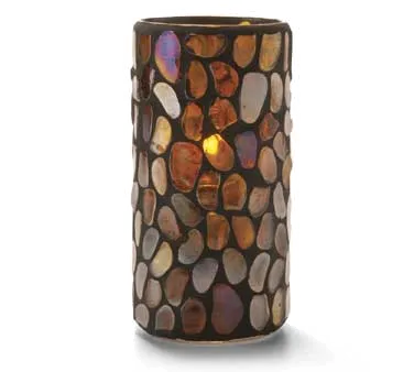 Introducing the Hollowick, 46318A, Candle Lamp / Holder, a versatile lighting solution for any commercial restaurant setting. This Amber Pebble Tall Cylinder Glass Lamp adds a touch of elegance and warmth to your dining area. Crafted with amber mosaic colored glass, this lamp creates a cozy and inviting ambiance that enhances the dining experience for your guests. Measuring 6"H x 3" dia., it accommodates Hollowick's HD42, HD26, or HD17 liquid candles, providing a reliable and long-lasting light source. Whether you're looking to create a romantic atmosphere or simply add a touch of sophistication, the Hollowick, 46318A, Candle Lamp / Holder is the perfect choice for your commercial restaurant needs.
