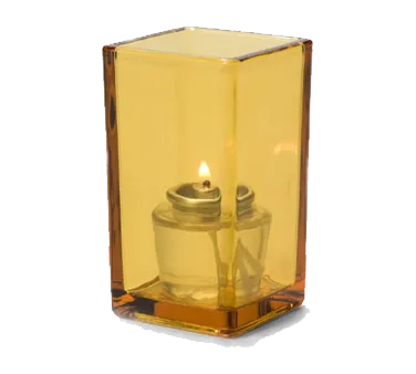 Introducing the Hollowick, 6109A, Candle Lamp / Holder, perfect for enhancing the ambiance of any commercial restaurant. This Amber Quad Votive Glass Lamp offers versatile options to create a warm and inviting atmosphere. Standing at 4-3/8" high and measuring 2-1/2" square, this lamp accommodates Hollowick's HD8 or HD15 Liquid candles, providing a long-lasting and reliable light source. Crafted from glass in a beautiful amber color, this lamp adds a touch of elegance to any dining space. Whether used on tables, bars, or buffet stations, this candle lamp/holder is a must-have for commercial restaurants looking to create a cozy and inviting atmosphere for their guests.