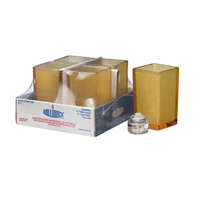 Introducing the Hollowick 6109AJ-4 Amber Jewel Quad Votive Glass Lamp, a must-have for commercial restaurants looking to enhance their ambiance. This 4-pack of glass lamps is designed to accommodate Hollowick's HD8 Liquid Tealight, providing a warm and inviting glow to any dining space. With a height of 4-3/8" and a square shape measuring 2-1/2", these lamps are both stylish and practical. The amber jewel color adds a touch of elegance, creating a cozy and intimate atmosphere for guests. Whether used on tables, shelves, or bars, these lamps are perfect for creating a welcoming environment that will leave a lasting impression on customers. Elevate your restaurant's ambiance with the Hollowick 6109AJ-4 Amber Jewel Quad Votive Glass Lamp.
