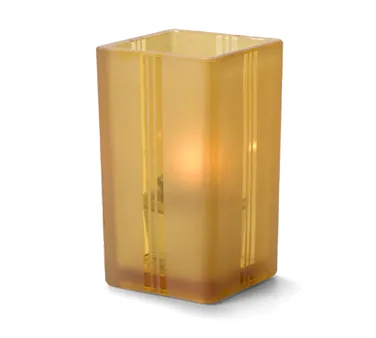 Effortless elegance in every glow using the Hollowick, 6179FA, Candle Lamp / Holder. This Amber Art Deco Quad Votive Glass Lamp is the perfect addition to any commercial restaurant setting. With its art deco design and amber glass, it adds a touch of sophistication and warmth to any table or bar. Measuring 4-3/8"H x 2-1/2" sq., this quad votive lamp accommodates Hollowicks HD8 or HD15 liquid candles, providing a long-lasting and reliable source of light. Whether used for intimate dinners or lively events, this candle lamp creates a cozy and inviting atmosphere that will impress your guests. Elevate your restaurant's ambiance with the Hollowick, 6179FA, Candle Lamp / Holder.