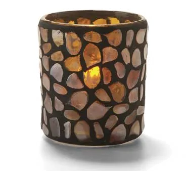 Illuminate with style and elegance using the Hollowick, 6256A, Candle Lamp / Holder. This Amber Pebble Votive Glass Lamp is the perfect addition to any commercial restaurant setting. Crafted with amber mosaic colored glass, this pebble glass votive exudes a warm and inviting ambiance. Standing at 3-3/8" tall and 3" in diameter, it accommodates Hollowicks HD15, HD12, or HD8 liquid candles, providing a long-lasting and reliable source of light. Whether placed on tables, bars, or countertops, this candle lamp adds a touch of sophistication to any dining experience. Its sleek design and vibrant color make it a standout piece, creating a memorable atmosphere for guests. Elevate your restaurant's ambiance and impress your patrons with the Hollowick, 6256A, Candle Lamp / Holder.