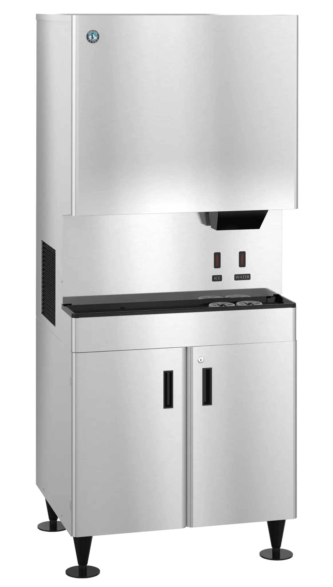 The DCM-752BAH is capable of producing approximately 708 lbs of Cubelet nugget-style ice cubes per day, The built-in storage bin will hold up to 95 lbs of ice* at a time. This Air-cooled icemaker has an Push button operation that dispenses ice or water. This sanitary icemaker/dispenser features a user-friendly dispensing mechanism that allows easy to chew, cubelet ice to be dispensed with a simple push of a button. This model features Advanced CleanCycle24 design – it performs a 2 second purge every hour to clean itself. The sanitary dispenser design keeps ice fully contained until it is needed, minimizing the opportunity for cross-contamination and keeping your ice clean. Keep your kitchen running smoothly with this Cubelet Ice and Water Dispenser. Stand not included.*Rated in accordance with AHRI Standard 820(I-P). Capacity based on 100% of total volume x 30 lb/ft3 average density of ice.
