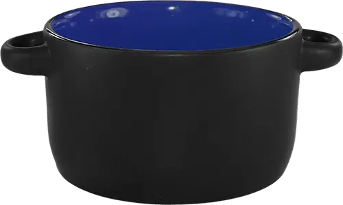 Upgrade tables for superior elegance with the International Tableware, 83567-2899/05MF-05C China Bowl. This fully vitrified porcelain bowl is designed for commercial restaurant use, offering durability and style. With a 13 oz. capacity and a 4-1/8" diameter, it's perfect for serving bistro soups and other delectable dishes. The round shape and convenient handles make it easy to carry and serve, enhancing efficiency in a busy restaurant setting. The black matte exterior adds a touch of sophistication, while the country blue interior adds a pop of color to your table presentation. Oven, microwave, and dishwasher safe, this bowl is built to withstand the demands of a commercial kitchen. Lead-free and crafted with Hilo technology, it ensures the safety and satisfaction of your customers. Elevate your restaurant's dining experience with the International Tableware China Bowl.