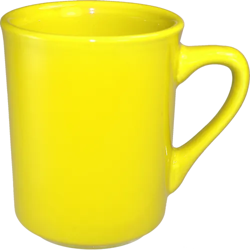 Introducing the International Tableware, 87241-242, Mug, China a must-have for any commercial restaurant. This fully vitrified ceramic mug is designed to withstand the demands of a bustling restaurant environment. With a capacity of 8-1/2 oz., it's perfect for serving hot beverages like coffee, tea, or hot chocolate. The round shape and sturdy handle make it easy to hold and drink from, ensuring a comfortable experience for your customers. The mug is microwave and dishwasher safe, allowing for quick and convenient heating and cleaning. Its vibrant yellow color adds a pop of brightness to your table settings, while the lead-free construction ensures safety. Elevate your restaurant's beverage service with the International Tableware, 87241-242, Mug, China.