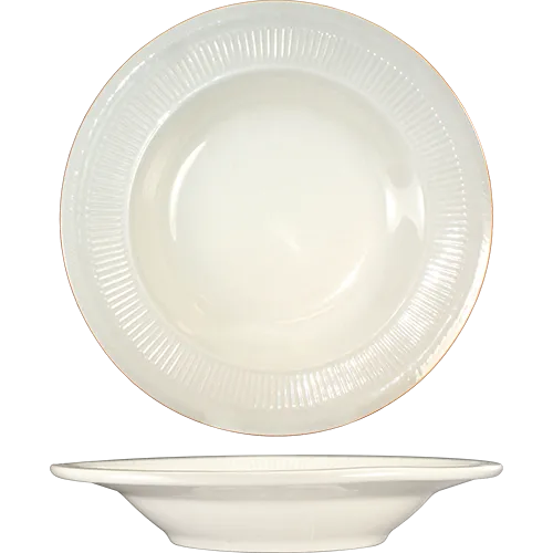 Define restaurant ambiance effortlessly with the International Tableware AT-3 China Bowl. This 12 oz. soup bowl is perfect for serving delicious soups, stews, and other delectable dishes in your commercial restaurant. Crafted with a deep rim and embossed design, this bowl adds a touch of elegance to any table setting. The lined edge ensures a clean presentation, while the American White color enhances the visual appeal of your culinary creations. Made from lead-free ceramic, this bowl is both microwave and dishwasher safe, making it convenient for busy restaurant kitchens. With a diameter of 9" and a height of 1-5/8", it provides ample space for generous portions