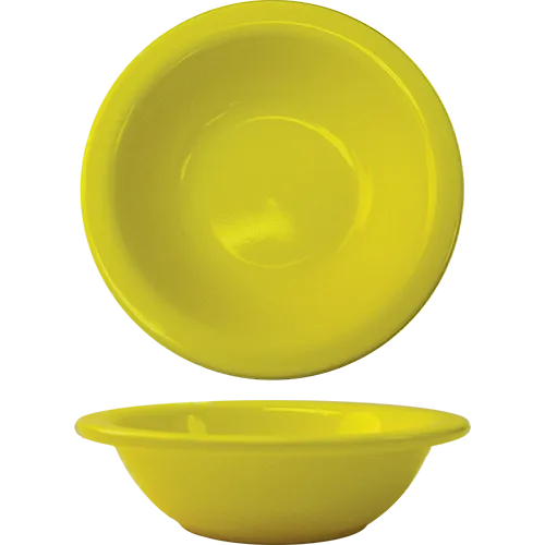 Modernize dining aesthetics with the International Tableware CA-10-Y China Bowl. This vibrant yellow grapefruit bowl adds a pop of color to any table setting, creating a visually appealing dining experience. With a generous capacity of 13 oz., this bowl is perfect for serving a variety of dishes, from fresh fruit to soups and salads. Its 6-5/8" diameter and 1-3/4" height provide ample space for culinary creations. Made of lead-free ceramic, this bowl is both microwave and dishwasher safe, ensuring convenience and durability in a busy restaurant environment. The rolled edge adds a touch of elegance, while the Cancun design adds a tropical flair