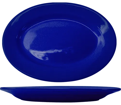 Maximize dining appeal effortlessly with International Tableware's CA-14-CB Platter. This oval-shaped platter, measuring 12-1/2" x 9", is perfect for showcasing your culinary creations in a commercial restaurant setting. Crafted from lead-free ceramic, this platter features a stylish cobalt blue color that adds a touch of elegance to any table. The rolled edge design not only enhances its durability but also makes it easy to handle. Whether you're serving appetizers, main courses, or desserts, this microwave and dishwasher-safe platter is a versatile addition to your restaurant's dinnerware collection. Elevate your presentation and impress your guests with the International Tableware CA-14-CB Platter.