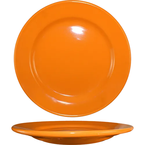 Transform dining spaces with flair using the International Tableware CA-21-O Plate. This wide-rimmed, 12" round plate is designed to add a touch of elegance to any commercial restaurant setting. Made from lead-free ceramic, it is both microwave and dishwasher safe, ensuring convenience and durability. The rolled edge adds a stylish touch, while the vibrant orange color of the Cancun collection brings a pop of color to your table. Whether you're serving appetizers, main courses, or desserts, this plate is versatile enough to showcase any culinary creation. The International Tableware CA-21-O Plate is a must-have for restaurants looking to elevate their dining experience and impress their guests with its authentic and eye-catching design.