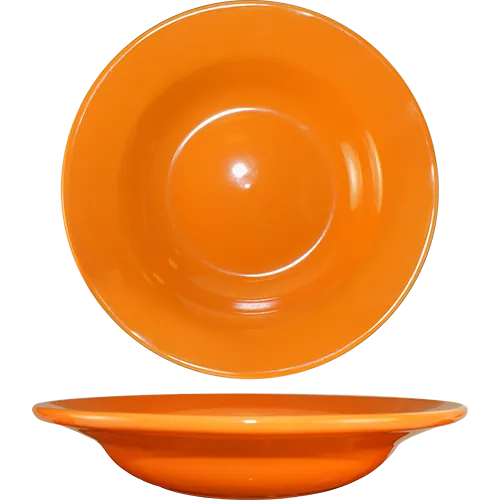 Upgrade to meet modern dining demands with the International Tableware CA-3-O China Bowl. This versatile soup bowl is perfect for commercial restaurant use, offering a generous 12 oz. capacity and a deep rim for serving hearty portions of soup, stew, or chili. Crafted from durable ceramic, this bowl is microwave and dishwasher safe, ensuring easy heating and cleaning. The vibrant orange color adds a pop of personality to your table setting, while the rolled edge provides a sleek and polished look. With a diameter of 8-3/4" and a height of 1-5/8", this bowl is the ideal size for serving individual portions. Whether you're running a bustling diner or an upscale bistro, the International Tableware CA-3-O China Bowl is a must-have addition to your restaurant's dinnerware collection.