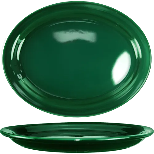 Craft memorable dining moments with International Tableware's CAN-13-G Platter. This oval-shaped platter, measuring 11-3/4" x 9-1/4", is perfect for showcasing your culinary creations in a commercial restaurant setting. Its narrow rim and rolled edge design add a touch of elegance to any presentation, while the vibrant green color of the ceramic material adds a pop of color to your table. The CAN-13-G Platter is not only visually appealing but also practical, as it is microwave and dishwasher safe, making it easy to heat and clean. With its lead-free construction, you can serve your dishes with confidence, knowing that they are safe for your customers. Whether you're serving appetizers, main courses, or desserts, this platter is a versatile and reliable choice. Elevate your dining experience with International Tableware's CAN-13-G Platter.