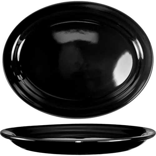 Upgrade tables for superior elegance with the International Tableware CAN-14-B Platter. This stunning platter is designed to enhance the presentation of your culinary creations, making it perfect for commercial restaurant use. Crafted from lead-free ceramic, this oval platter features a narrow rim and a rolled edge, adding a touch of sophistication to any table setting. With its generous size of 13-1/4" x 10-3/8", it provides ample space for showcasing appetizers, entrees, or desserts. The microwave and dishwasher-safe design ensures easy and convenient use, saving you time and effort in the kitchen. The sleek black color of the Cancun collection adds a modern and stylish touch to your restaurant's ambiance. Elevate your dining experience and impress your guests with the International Tableware CAN-14-B Platter.