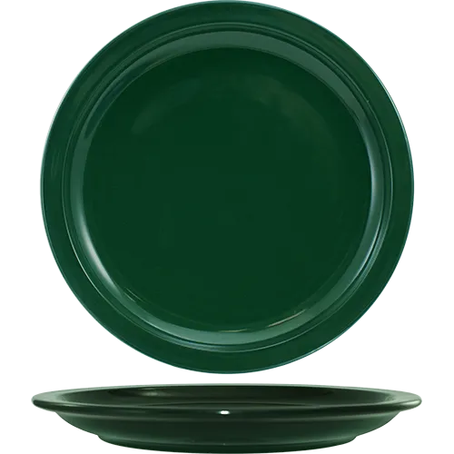 Boost functionality with chic designs using the International Tableware CAN-6-G Plate. This narrow-rimmed, round plate is perfect for commercial restaurant use. With a diameter of 6-1/2 inches, it is ideal for serving appetizers, desserts, or small portions. The rolled edge adds a touch of elegance, while the green ceramic material adds a pop of color to your table setting. Not only is this plate microwave and dishwasher safe, but it is also lead-free, ensuring the safety of your customers. Whether you're running a trendy cafe or a fine dining establishment, this plate is a must-have for enhancing the presentation of your culinary creations. Trust International Tableware for quality and style in every dish.