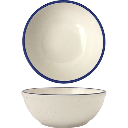 Define restaurant ambiance effortlessly with the International Tableware DA-15 China Bowl. This ceramic oatmeal/nappie bowl is designed to enhance the dining experience in commercial restaurants. With a capacity of 14 oz. and a narrow rim, it offers a sleek and modern look while providing ample space for serving various dishes. The microwave and dishwasher-safe feature ensures easy and convenient cleaning, saving valuable time in a busy restaurant environment. The American White color with blue speckle and rim adds a touch of elegance to any table setting, creating a visually appealing presentation for your culinary creations. Made with lead-free materials, this bowl prioritizes safety without compromising on style