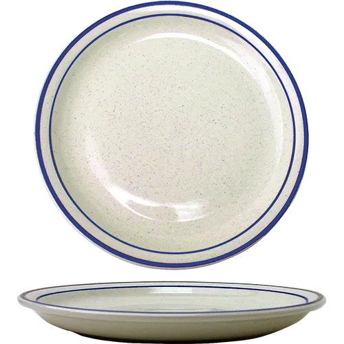 Ensure top-notch dining aesthetics with the International Tableware, DA-16, Plate, China. This ceramic plate is designed to elevate the presentation of your culinary creations in a commercial restaurant setting. With a 10-1/2" diameter and a narrow rim, it provides ample space for showcasing your dishes while maintaining a sleek and modern look. The American White color with Blue speckle and rim adds a touch of elegance to any table setting. Not only is this plate microwave and dishwasher safe, but it is also lead-free, ensuring the safety of your customers. Enhance your restaurant's dining experience with this high-quality plate.