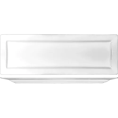 Elevate offerings with innovative tableware using the International Tableware EL-50 Platter. This rectangular platter, measuring 16-1/8" x 5-1/2", is designed to enhance the presentation of your culinary creations. With its wide rim and rolled edge, it adds a touch of elegance to any dish. Made from fully vitrified porcelain, this platter is not only microwave and dishwasher safe but also lead-free, ensuring the safety of your customers. The bright white color of the Elite collection adds a sophisticated and modern look to your table setting. Whether you're serving appetizers, main courses, or desserts, this platter is perfect for showcasing your culinary masterpieces