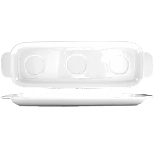 Precision in tableware elegance with International Tableware, FA-601, Platter, China. This sampler platter is designed to elevate your restaurant's presentation. With its sleek rectangular shape and convenient handles, it offers both style and functionality. Made from fully vitrified porcelain, this platter is microwave and dishwasher safe, ensuring easy and efficient use in a busy commercial kitchen. The bright white color adds a touch of sophistication to any dish, making it perfect for showcasing appetizers, sushi rolls, or desserts. Lead-free and crafted with attention to detail, this platter is a reliable and durable choice for professional use. Trust International Tableware to deliver exceptional quality and style to your dining establishment.