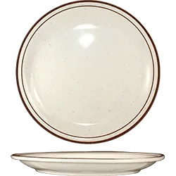 Introducing the International Tableware GR-6 Plate, China a must-have for any commercial restaurant. Crafted with precision and designed for durability, this plate is perfect for serving appetizers, desserts, and more. With a narrow rim and a 6-1/2" diameter, it offers a sleek and elegant presentation that will impress your guests. Made from lead-free ceramic, this plate is both microwave and dishwasher safe, ensuring convenience and ease of use in a busy restaurant setting. The American White color with Brown speckle and rim adds a touch of sophistication to any table setting. Trust International Tableware, a renowned vendor in the industry, to deliver exceptional quality and style. Elevate your restaurant's dining experience with the International Tableware GR-6 Plate, China.
