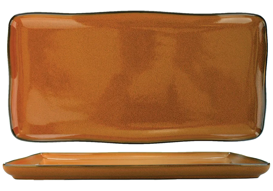 Upgrade tableware with chic products using the International Tableware LU-133-TA Platter. This rectangular platter measures 13" x 6-1/2" and is perfect for showcasing appetizers, desserts, or main courses in a commercial restaurant setting. Made of lead-free porcelain with a hand-painted glaze finish, this platter exudes elegance and sophistication. The Terracotta Luna design adds a touch of rustic charm to any table setting. Not only is this platter microwave and dishwasher safe, but it is also durable and long-lasting, making it ideal for busy restaurant kitchens. Trust International Tableware, a reputable vendor in the industry, to provide high-quality and stylish platters that will enhance the dining experience for your customers.