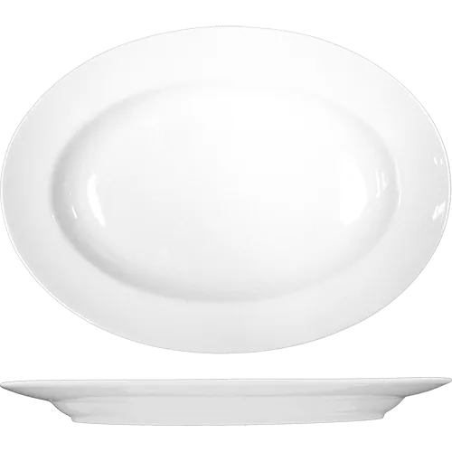 Invest in tableware for peak allure with the International Tableware, PH-12 Platter. Crafted from Reflections of Elegance bone china, this platter exudes sophistication and elegance, making it the perfect addition to any commercial restaurant setting. The oval shape and wide rim of the platter provide ample space for beautifully presenting a variety of dishes, from appetizers to main courses. Its fully vitrified construction ensures durability and chip resistance, making it suitable for everyday use in busy restaurant kitchens. The rolled edge adds a touch of refinement, while the white color enhances the visual appeal of your culinary creations. This platter is also microwave and dishwasher safe, allowing for easy reheating and effortless cleanup. With its lead-free composition, you can serve your guests with confidence. Elevate your restaurant's presentation with the International Tableware, PH-12 Platter and impress your diners with its timeless elegance and practical functionality.