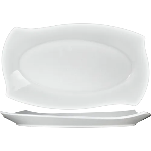 Stay at the forefront of tableware elegance with the International Tableware, RA-12, Platter, China. This stunning platter is designed to elevate your restaurant's dining experience. Crafted with a signature shape rim and fully vitrified porcelain, it exudes sophistication and durability. The 10" x 5-3/4" x 1-1/4"H oval shape provides ample space for presenting your culinary creations in style. The bright white color adds a touch of elegance to any table setting, while the lead-free and microwave-safe construction ensures convenience and safety. Dishwasher-safe for easy cleaning, this platter is a practical choice for busy commercial kitchens. Whether you're serving appetizers, entrees, or desserts, the International Tableware RA-12 Platter is the perfect choice for showcasing your culinary masterpieces.