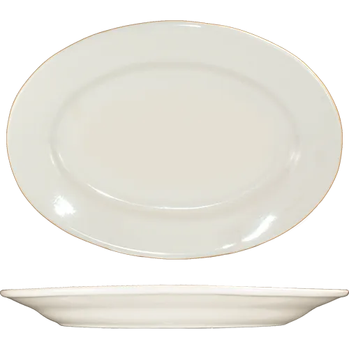 Maximize dining appeal effortlessly with International Tableware's RO-33 Platter. This oval-shaped platter, measuring 7" x 4-5/8", is designed to enhance the presentation of your culinary creations. Crafted from lead-free ceramic, it boasts a sleek rolled edge and a classic American White finish, adding a touch of elegance to any table setting. The RO-33 Platter is not only visually appealing but also practical for commercial restaurant use. It is microwave and dishwasher safe, ensuring convenience and efficiency in a busy kitchen. Whether you're running a fine dining establishment or a casual eatery, the RO-33 Platter from International Tableware is a must-have addition to your restaurant's dinnerware collection.