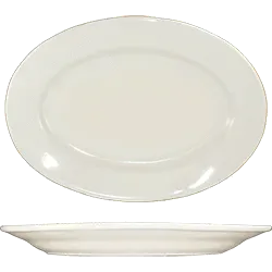 Optimize table settings for allure with International Tableware's RO-48 Platter. This oval, rolled-edge platter measures 13-1/2" x 9-1/2" and is designed to enhance the presentation of your culinary creations. Made from lead-free ceramic, this platter is both microwave and dishwasher safe, ensuring convenience and durability in a busy commercial restaurant setting. The American White color adds a touch of elegance to any table, while the Roma design adds a subtle sophistication. Whether you're showcasing appetizers, entrees, or desserts, the RO-48 Platter is a versatile and stylish choice. Elevate your restaurant's dining experience with this high-quality platter from International Tableware.