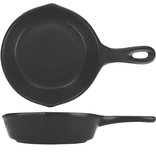 Set tables for memorable experiences with the International Tableware SK-11-B Fry Pan Server. This round serving skillet is designed for commercial restaurant use, making it the perfect addition to your kitchen. With a capacity of 24 oz., this skillet is ideal for serving a variety of dishes, from sizzling fajitas to mouthwatering stir-fries. The stoneware-ceramic construction ensures durability and heat retention, allowing your food to stay hot and delicious. The black color adds a touch of elegance to your presentation, while the convenient handle makes it easy to transport from the kitchen to the table. Oven, microwave, and dishwasher safe, this skillet is a versatile and practical choice for busy restaurant kitchens. Elevate your dining experience with the International Tableware SK-11-B Fry Pan Server and impress your customers with every dish.