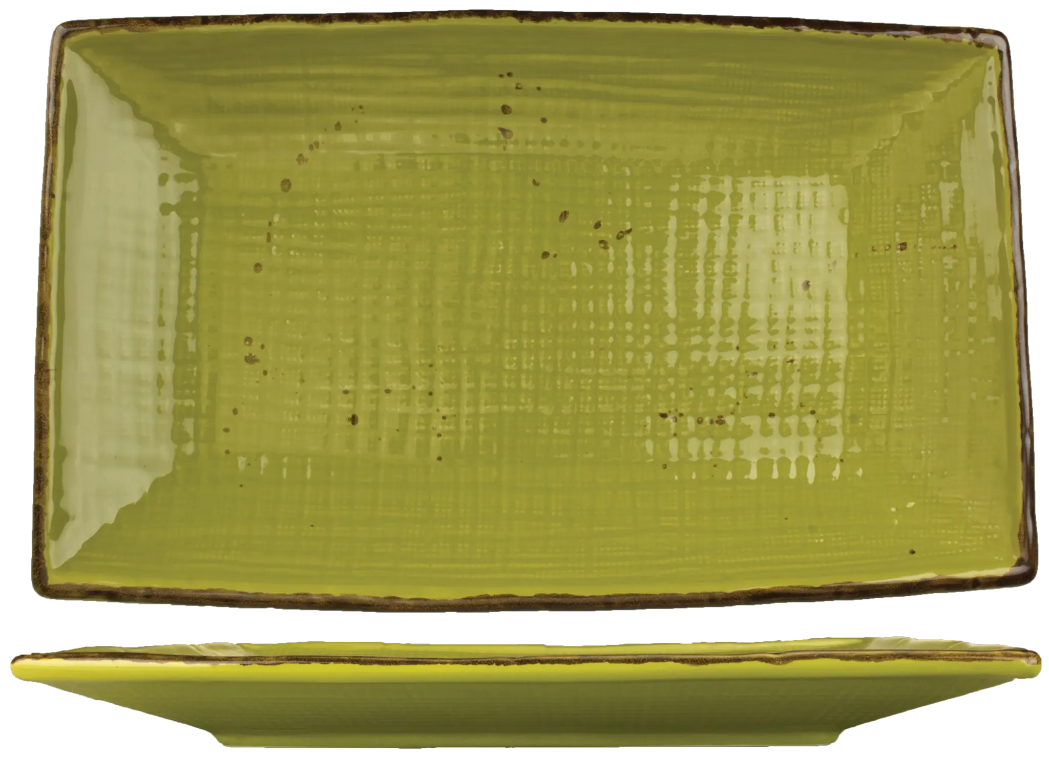 Upgrade tables for superior elegance with the International Tableware SV-127-BA Platter. This rectangular platter measures 12-1/4" x 7-3/8" and features an embossed, speckled design that adds a touch of sophistication to any dining experience. Made from fully vitrified stoneware, this platter is microwave and dishwasher safe, making it perfect for busy commercial restaurant kitchens. The rolled edge ensures durability and prevents chipping, while the lead-free construction guarantees the safety of your guests. The basil color of the platter adds a pop of freshness to your table setting, creating an inviting atmosphere for your customers. Elevate your presentation and impress your guests with the International Tableware SV-127-BA Platter.