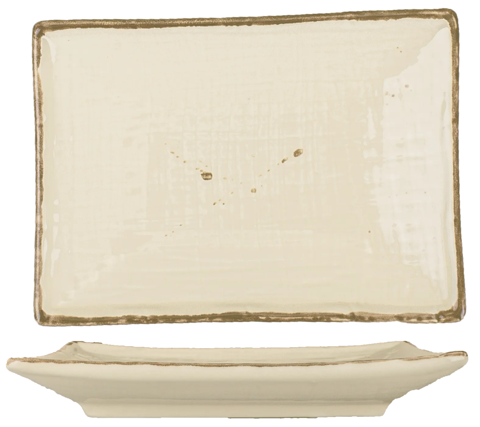 Boost aesthetics with chic options using the International Tableware SV-65-KH Platter. This rectangular platter measures 6-3/4" x 4-3/4" and features an embossed, speckled design that adds a touch of elegance to any table setting. Made from fully vitrified stoneware, this platter is microwave and dishwasher safe, making it perfect for busy commercial restaurant kitchens. The rolled edge ensures durability and prevents chipping, while the lead-free construction guarantees safety. The khaki color of the platter adds a warm and inviting touch to your presentation, making it ideal for showcasing appetizers, desserts, or small entrees. Elevate your dining experience with the International Tableware SV-65-KH Platter and impress your guests with its stylish design and practical functionality.