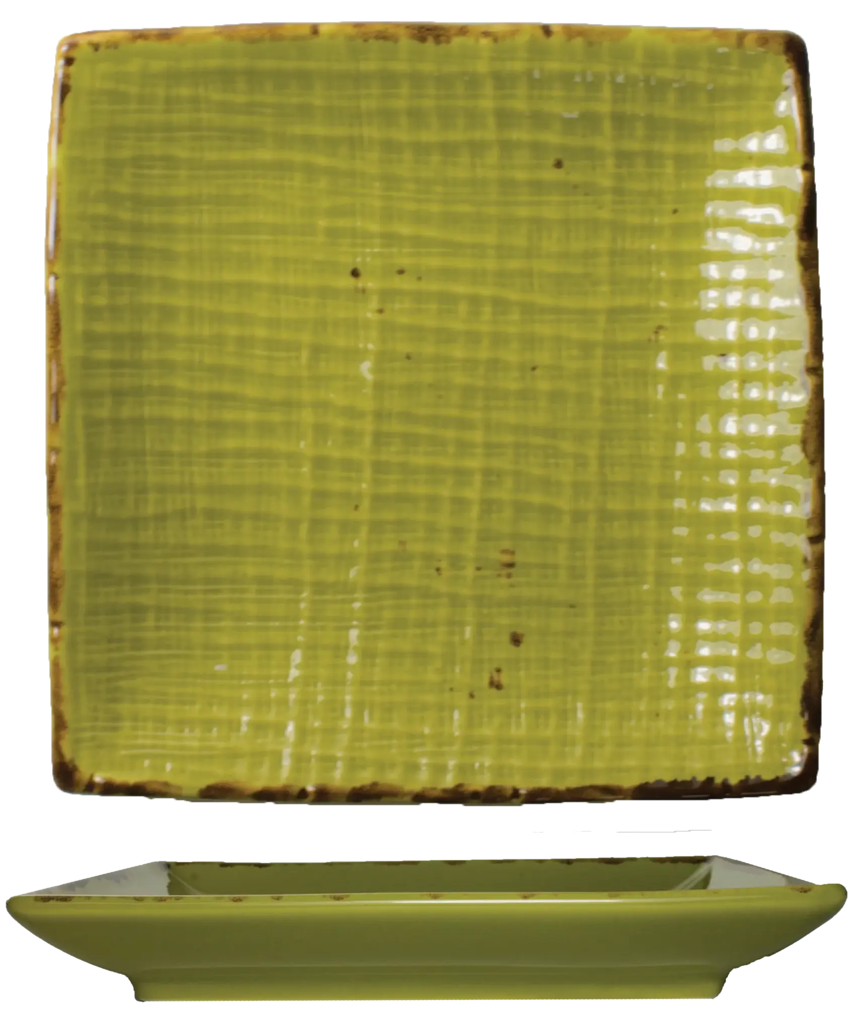 Modernize dining aesthetics with the International Tableware SV-8-BA Plate. This square plate measures 8" x 8" and features an embossed, speckled design that adds a touch of elegance to any table setting. Made from fully vitrified stoneware, this plate is microwave and dishwasher safe, making it perfect for busy commercial restaurants. The rolled edge ensures durability and prevents chipping, while the lead-free construction guarantees safety. The basil color of the plate adds a pop of freshness to your presentation, enhancing the visual appeal of your dishes. Whether you're serving appetizers, entrees, or desserts, the International Tableware SV-8-BA Plate is a versatile and stylish option that will impress your customers and elevate their dining experience.