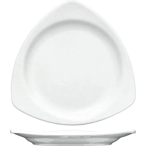 Stay competitive with cutting-edge tableware using the International Tableware TR-10-EW Plate. This fully vitrified, microwave, and dishwasher safe plate is designed to meet the demands of a busy commercial restaurant. With its narrow rim and triangular shape, it adds a touch of elegance to any table setting. Made from lead-free porcelain in a classic European White color, this plate exudes sophistication and durability. Whether you're serving appetizers, main courses, or desserts, this plate is the perfect choice for showcasing your culinary creations. Elevate your restaurant's dining experience with the International Tableware TR-10-EW Plate.