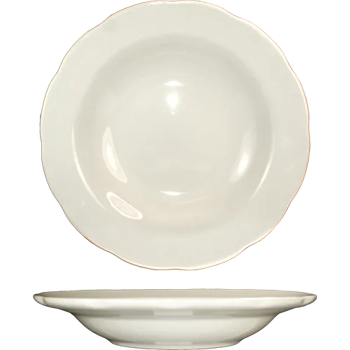 Stay competitive with appealing settings using the International Tableware, VI-3, China, Bowl. This 12 oz. soup bowl is perfect for serving your signature soups, stews, and chowders in style. With its deep rim and scalloped edge, it adds a touch of elegance to any table setting. Made of lead-free ceramic, this bowl is both microwave and dishwasher safe, ensuring convenience and durability in a busy restaurant environment. The American White color and Victoria design add a classic and timeless look to your presentation. Whether you're running a fine dining establishment or a casual eatery, this bowl is a must-have for serving your delicious creations. Elevate your dining experience with the International Tableware, VI-3, China, Bowl.