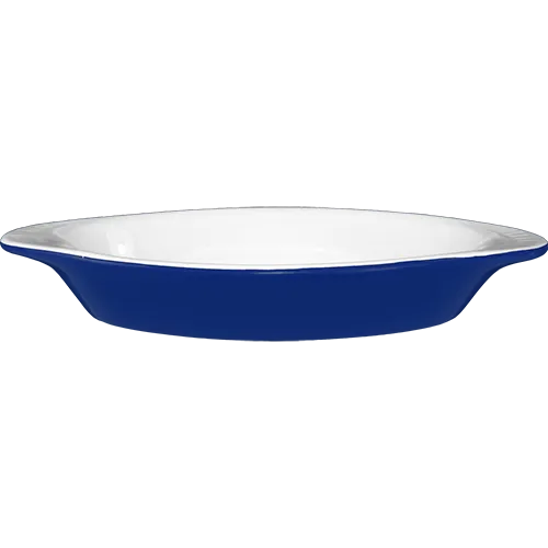 Stay ahead with trendy presentations using the International Tableware, WRO-8-EW-CB Rarebit China. This fully vitrified stoneware dish is designed for commercial restaurant use, offering both style and functionality. With its oval shape and two-tone design, featuring a European White interior and a striking cobalt blue exterior, this rarebit dish is sure to impress your customers. The 8 oz. capacity is perfect for serving Welsh rarebit or other delicious appetizers. The dish is oven, microwave, and dishwasher safe, making it convenient for busy restaurant kitchens. Its lead-free construction ensures safety and durability. Elevate your culinary creations with this eye-catching rarebit dish from International Tableware.