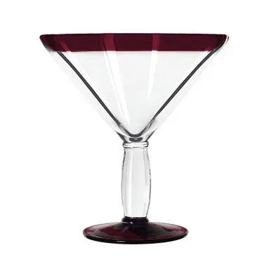 Upgrade to meet modern demands with the Libbey Glass, 92307R, Glass, Cocktail / Martini. This hand-blown cocktail glass is designed to elevate your drink presentation and enhance the dining experience in your commercial restaurant. With a generous capacity of 24 oz., it allows you to serve large, eye-catching cocktails that are sure to impress your customers. The vibrant red rim adds a touch of elegance and style, making it perfect for upscale establishments. The anneal treated glass ensures durability and longevity, while also being dishwasher and microwave safe for easy cleaning and reheating. The sleek Aruba design, with its dimensions of H 7-5/8" T 6-1/2" B 4" D 6-1/2", offers a comfortable grip and a visually appealing aesthetic. Upgrade your cocktail service with the Libbey Glass, 92307R, Glass, Cocktail / Martini.