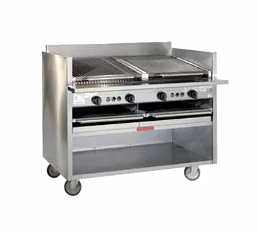Introducing the Magikitchn FM-SMB-636 Gas Charbroiler, a must-have for achieving culinary excellence in your commercial restaurant. This floor model charbroiler is designed to deliver exceptional performance and durability. With a 36" wide cooking surface and a free-floating round rod top grate, this charbroiler provides even heat distribution and allows for easy cleaning. The EZ tilt to front grease trough ensures efficient grease management, while the ceramic briquettes enhance flavor and reduce flare-ups. Made of 95% stainless steel, this unit is built to withstand the demands of a busy kitchen. The 6" service shelf with a utility bar provides convenient storage space, and the open cabinet base allows for easy access to supplies. With water tubs for added moisture control and a top grid scraper for effortless cleaning, the Magikitchn FM-SMB-636 Gas Charbroiler is the perfect addition to any commercial restaurant seeking to elevate their culinary creations.