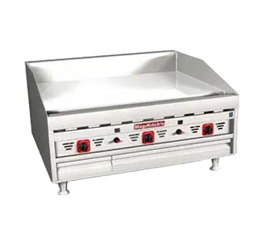 Fuel your restaurant's success with the Magikitchn MKG-36 Gas Countertop Griddle. This high-quality griddle is designed to meet the demands of a busy commercial kitchen. With a spacious 35-3/4" W x 24" D cooking surface, you'll have plenty of room to cook multiple items at once. The 1" thick polished griddle plate ensures even heat distribution for consistent cooking results. The snap-action thermostat and piezo ignitor make it easy to control and ignite the griddle, while the grease chute and box, along with the front grease trough, help to keep your workspace clean and tidy. The 3" side splash provides added protection against spills and splatters. Made of durable stainless steel, this griddle is built to withstand the rigors of a busy kitchen. With 90,000 BTU of power, this griddle delivers the performance you need to keep up with demand. CSA and NSF certified, you can trust the quality and safety of this product. Upgrade your kitchen with the Magikitchn MKG-36 Gas Countertop Griddle and experience the difference it can make in your restaurant's efficiency and productivity.