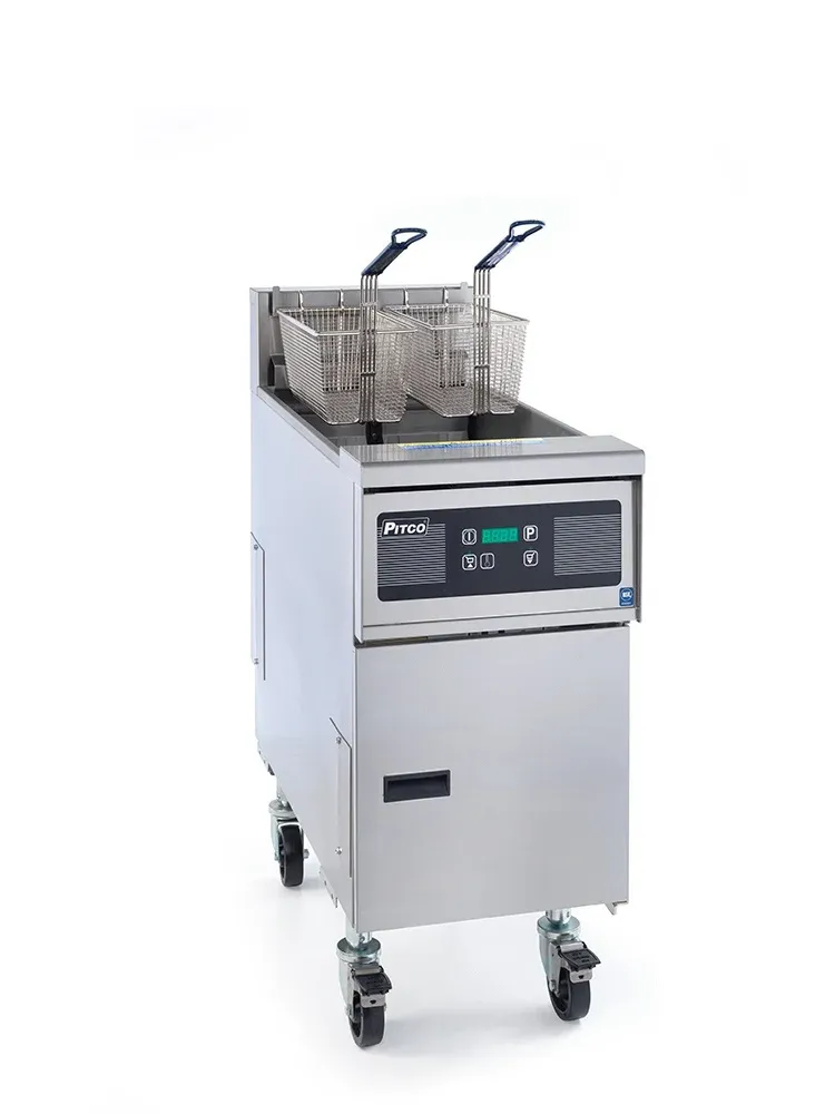 Experience kitchen innovation with the Pitco Frialator SE14T Fryer. This electric, floor model fryer is designed to meet the demands of a busy commercial restaurant. With its split frypot, you can simultaneously cook different types of food, increasing efficiency and productivity. Each tank has a capacity of 20-25 lbs of oil, allowing you to fry large quantities of food at once. The solid state controls ensure precise temperature regulation, while the melt cycle feature makes it easy to melt solid fats or shortenings. The drain valve interlock switch ensures safe and easy oil drainage, simplifying the cleaning process. Made with stainless steel tanks and a durable construction, this fryer is built to withstand the rigors of a commercial kitchen. Trust the Pitco Frialator SE14T Fryer to deliver consistent and delicious results every time.