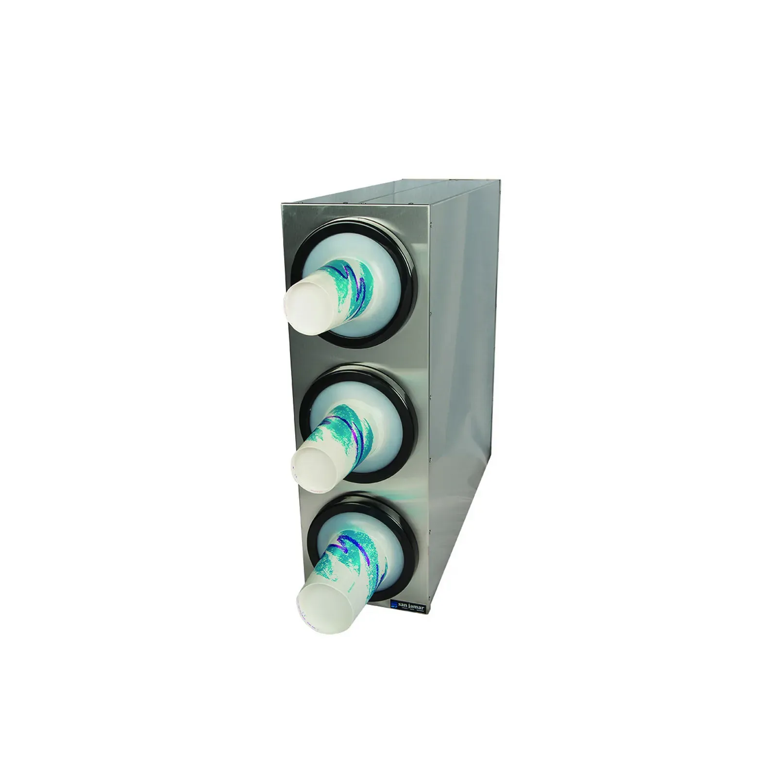 Introducing the San Jamar C2803 Cup Dispensers, Countertop. Foster innovation with this versatile and efficient beverage dispenser system. Designed for commercial restaurant use, this system includes three EZ-Fit One Size Fits All dispensers (C2410C) in a stainless steel construction, ensuring durability and longevity. With a compact size of 8-1/16"L x 24-3/8"W x 24-3/16"H, it fits perfectly on any countertop, saving valuable space. The NSF certification guarantees its compliance with strict health and safety standards. With its easy-to-use design, it allows for quick and convenient cup dispensing, enhancing efficiency during busy service hours. Upgrade your restaurant's beverage service with the San Jamar C2803 Cup Dispensers, Countertop, and experience the benefits of a well-organized and streamlined operation.