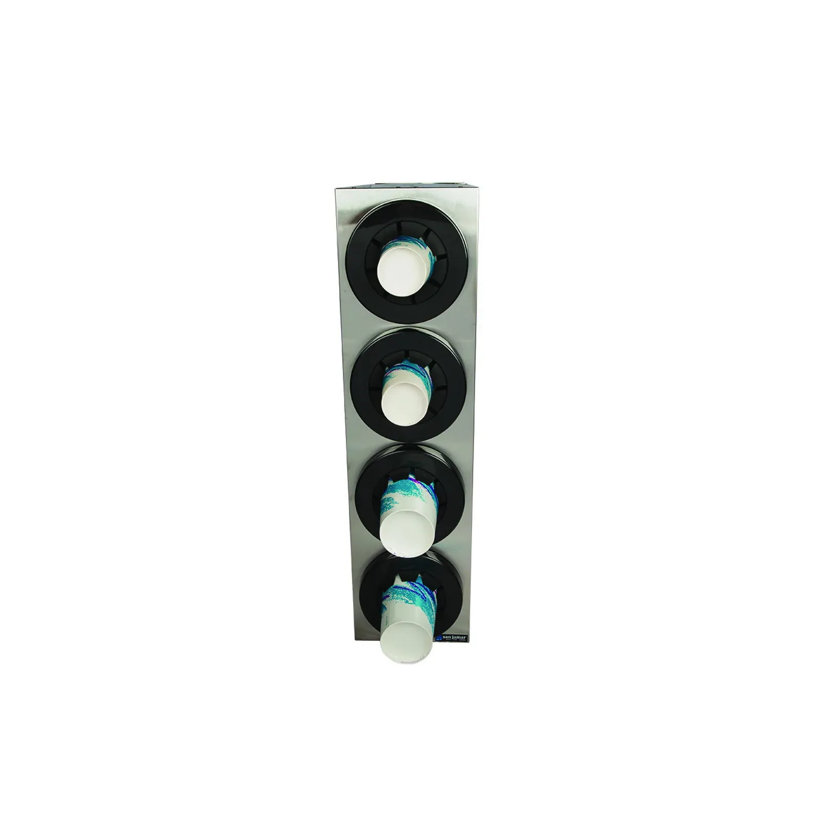 Elevate standards with the San Jamar C2854 Cup Dispensers, Countertop. This stainless steel dispenser system is designed to meet the demands of a commercial restaurant setting. With its compact size of 8-1/8"L x 24-3/8"W x 30-1/8"H, it can easily fit on any countertop. The system includes four cup dispensers (C5450C), ensuring quick and convenient access to cups for both customers and staff. The NSF certification guarantees the highest level of sanitation and safety. Whether you run a busy coffee shop, cafeteria, or fast-food restaurant, this cup dispenser system will streamline your operations and enhance the customer experience. Invest in the San Jamar C2854 Cup Dispensers, Countertop, and enjoy the benefits of efficiency, organization, and customer satisfaction.