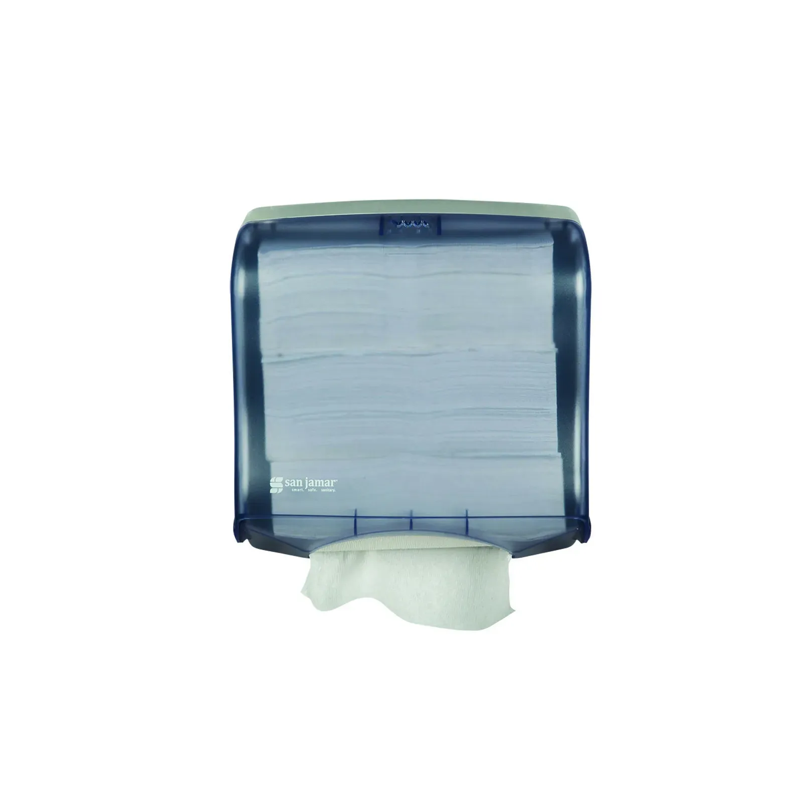 Streamline operations with the San Jamar T1755TBL Paper Towel Dispenser. This compact, wall-mounted dispenser is designed for commercial restaurant use, offering convenience and efficiency. With its lock and Present System, you can ensure that towels are securely stored and dispensed as needed. The dispenser holds up to 240 C-fold or 400 multifold towels, reducing the need for frequent refills. Made from durable, impact-resistant plastic, this dispenser is built to withstand the demands of a busy restaurant environment. The translucent arctic blue color adds a touch of style to your restroom or kitchen area. Trust San Jamar, a reputable vendor in the industry, to provide a high-quality product that meets your restaurant's needs. Upgrade your establishment with the San Jamar T1755TBL Paper Towel Dispenser and experience the convenience and reliability it offers.