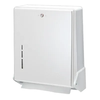 Ensure efficiency with the San Jamar T1905WH Paper Towel Dispenser. This classic Truefold dispenser is designed for commercial restaurant use, providing a convenient and hygienic solution for hand drying. With its wall mount design, it saves valuable counter space, measuring 11-5/8"W x 5"D x 14-1/2"H. The dispenser is compatible with both multi-fold and C-fold towels, offering versatility to meet your specific needs. Its metal front and break-resistant plastic back ensure durability and longevity, even in high-traffic areas. The flip door allows for easy towel refills, minimizing downtime and maximizing productivity. The white finish adds a clean and professional look to any restroom or kitchen area. Upgrade your restaurant's hand drying experience with the San Jamar T1905WH Paper Towel Dispenser.