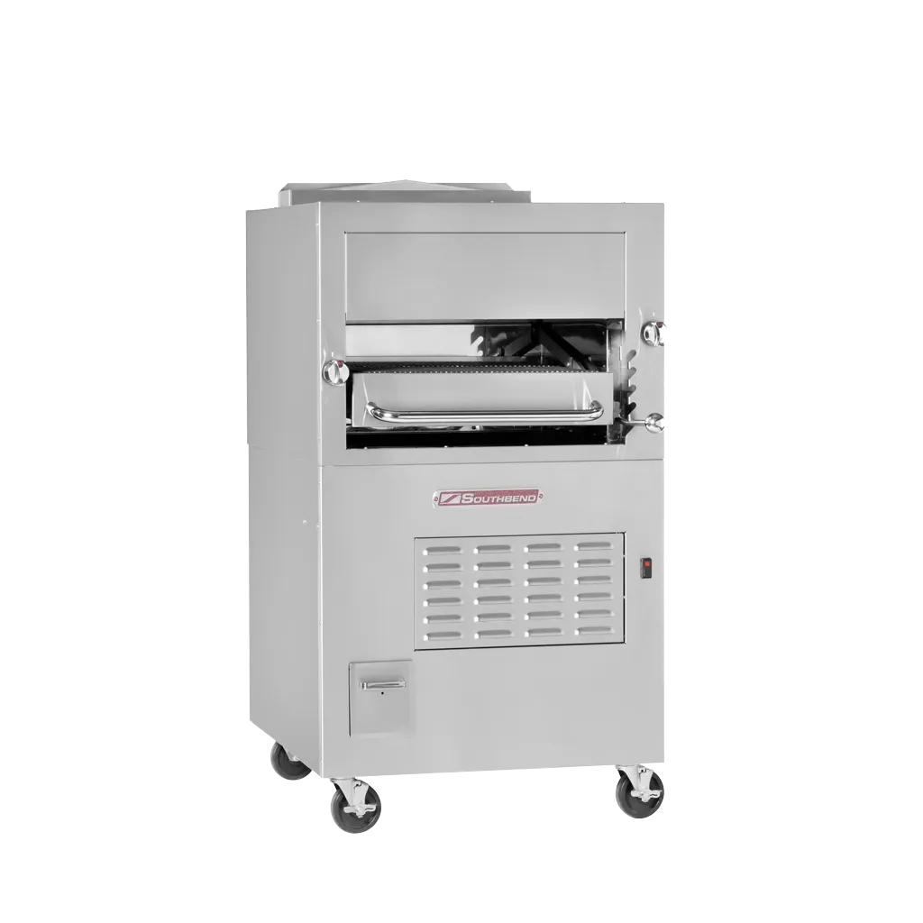 Discover kitchen perfection with the Southbend 170 Broiler. This gas-powered, single deck broiler is designed to meet the demands of a busy commercial restaurant. With its infrared technology and five height positions, you can achieve precise cooking results every time. The enclosed base and stainless steel construction ensure durability and easy cleaning, while the adjustable legs provide stability on any surface. With a powerful 104,000 BTU output, this broiler delivers exceptional cooking performance, allowing you to quickly and efficiently prepare a variety of dishes. Whether you're grilling steaks, searing seafood, or caramelizing vegetables, the Southbend 170 Broiler is the perfect addition to your kitchen. Plus, it qualifies for Southbend's Service First Program, ensuring you receive top-notch support and service. Elevate your restaurant's cooking capabilities with the Southbend 170 Broiler.