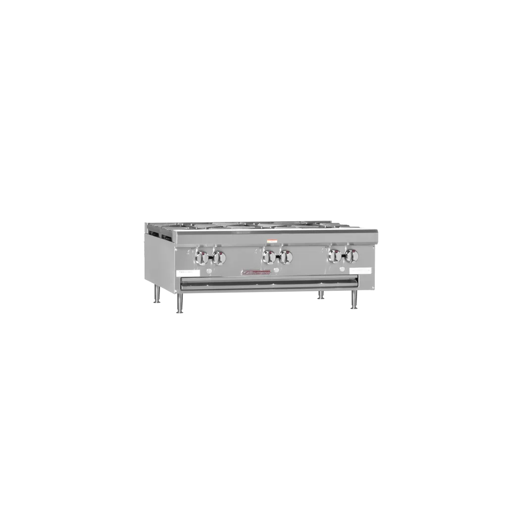 Invest in superior quality with the Southbend, HDO-48, Hotplate, Countertop, Gas. This high-performance hotplate is designed to meet the demands of a busy commercial restaurant kitchen. With 8 powerful 33,000 BTU open burners, this hotplate provides precise heat control for cooking a variety of dishes simultaneously. The manual controls allow chefs to easily adjust the heat to achieve the perfect cooking results. The removable cast iron grates and crumb tray make cleaning a breeze, ensuring a hygienic cooking environment. Made with a durable stainless steel front, sides, and 4" adjustable legs, this hotplate is built to withstand the rigors of a commercial kitchen. With a total of 264,000 BTU, this hotplate delivers exceptional cooking performance. Trust Southbend, a reputable vendor known for their quality products, to enhance your restaurant's efficiency and productivity.