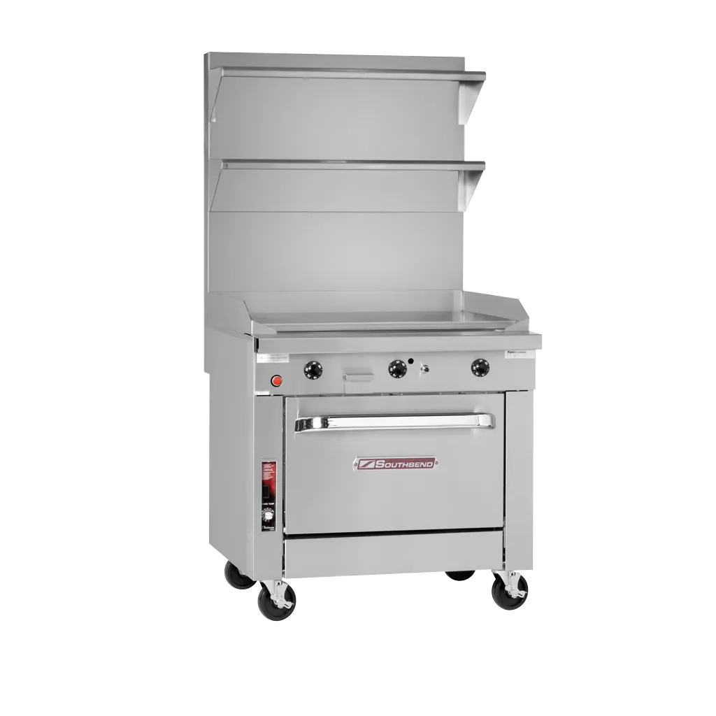 Transform your food service with the Southbend P48C-GGGG Range, a heavy-duty gas range designed to meet the demands of a commercial restaurant. This platinum range features a 48" griddle with a 1" thick griddle plate, allowing for even heat distribution and precise cooking. The manual controls give you full control over the cooking process, while the battery spark ignition ensures quick and reliable start-ups. With two cabinets and ample storage space, you can keep your kitchen organized and efficient. The stainless steel construction of the front, sides, rear, and exterior bottom not only adds durability but also makes cleaning a breeze. The 6" adjustable legs provide stability and flexibility in any kitchen layout. With a powerful 128,000 BTU output, this range is perfect for high-volume cooking. Trust Southbend's Service First Program for exceptional customer support. Upgrade your kitchen with the Southbend P48C-GGGG Range and experience professional-grade cooking performance.