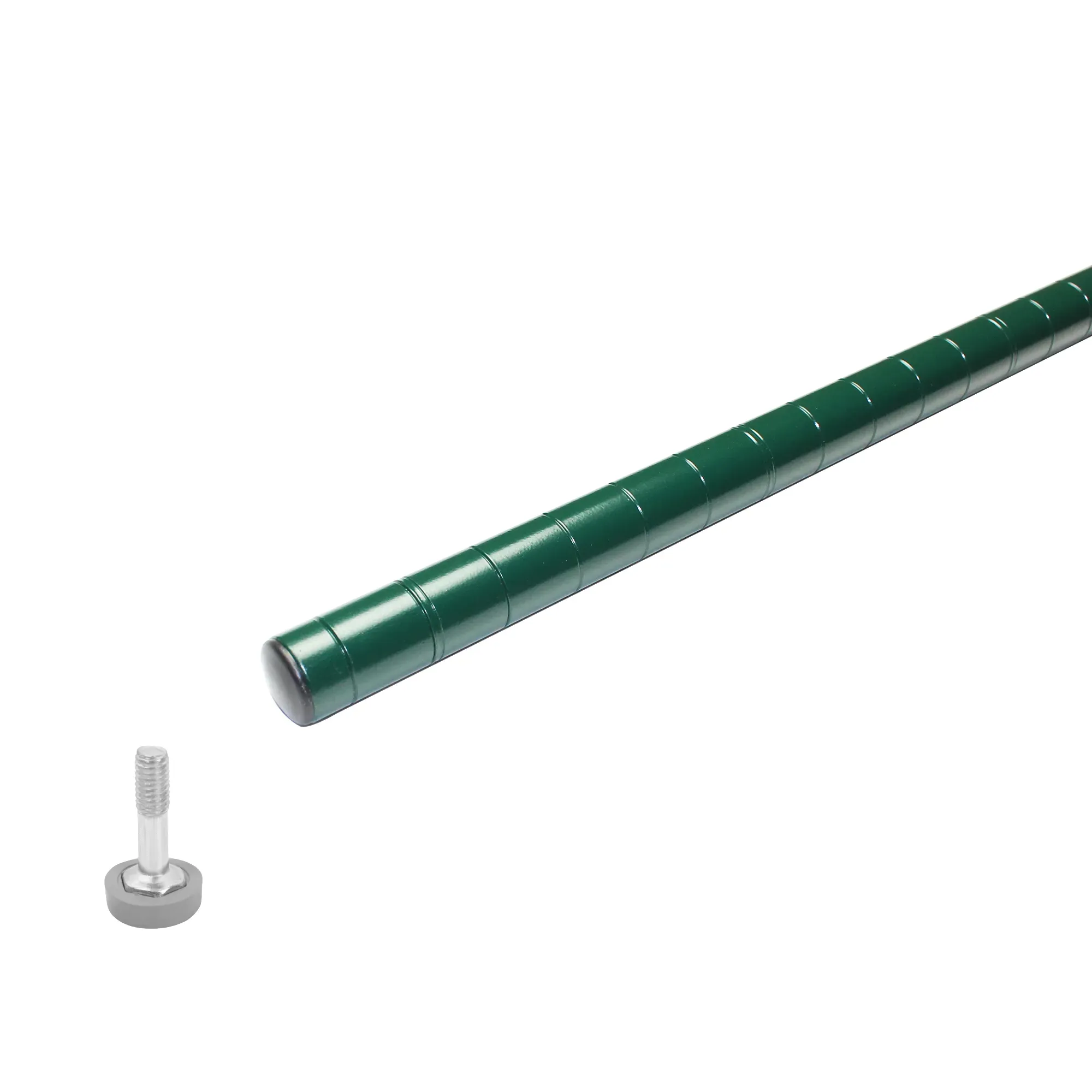 Elevate user experience with Thunder Group's CMEC063 Shelving; Green Epoxy Post with Leveling Foot. Designed specifically for commercial restaurant use, this shelving unit is a game-changer for any food establishment. The 63" post with leveling foot ensures stability and allows for easy adjustment to accommodate different storage needs. Made with green epoxy coated iron wire, this shelving unit is not only durable but also resistant to corrosion, making it perfect for the demanding environment of a restaurant kitchen. With a 5-year limited warranty and NSF certification, you can trust the quality and safety of this product. Whether you need to organize ingredients, kitchen tools, or cleaning supplies, Thunder Group's CMEC063 Shelving is the ideal solution for maximizing efficiency and maintaining a well-organized commercial kitchen.