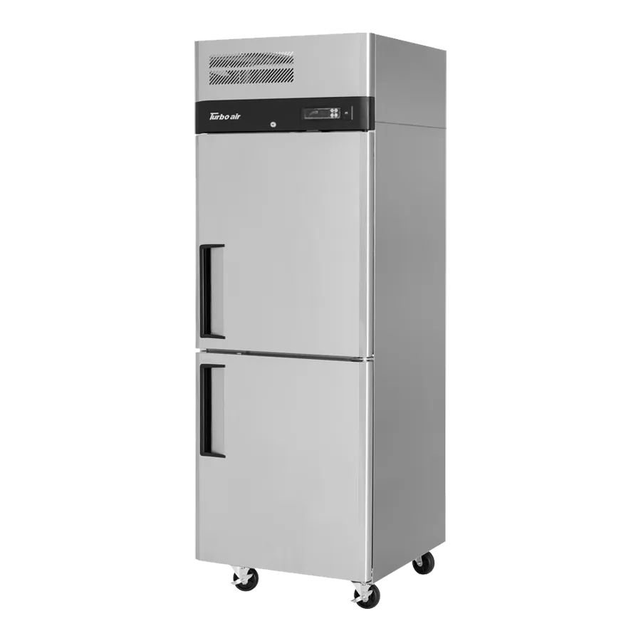 Mobilize your kitchen with the Turbo Air M3F24-2-N Freezer, Reach-In. This top-of-the-line freezer is designed to meet the demands of a busy commercial restaurant. With a spacious 21.7 cu. ft. capacity, it provides ample storage space for all your frozen ingredients and prepared dishes. The exterior LED digital thermometer allows for easy temperature monitoring, ensuring your food stays at the perfect temperature for optimal freshness. The self-diagnosis monitoring feature alerts you to any potential issues, allowing for quick and efficient maintenance. The hot gas condensate system prevents water overflow, while the smart fuzzy defrost and automatic fan motor delays ensure energy efficiency. The solid hinged half doors with recessed handle and lock provide easy access and security. With its stainless steel construction and self-cleaning condenser device, this freezer is built to withstand the rigors of a commercial kitchen. Plus, it is ENERGY STAR certified, making it an eco-friendly choice. Upgrade your kitchen with the Turbo Air M3F24-2-N Freezer, Reach-In.