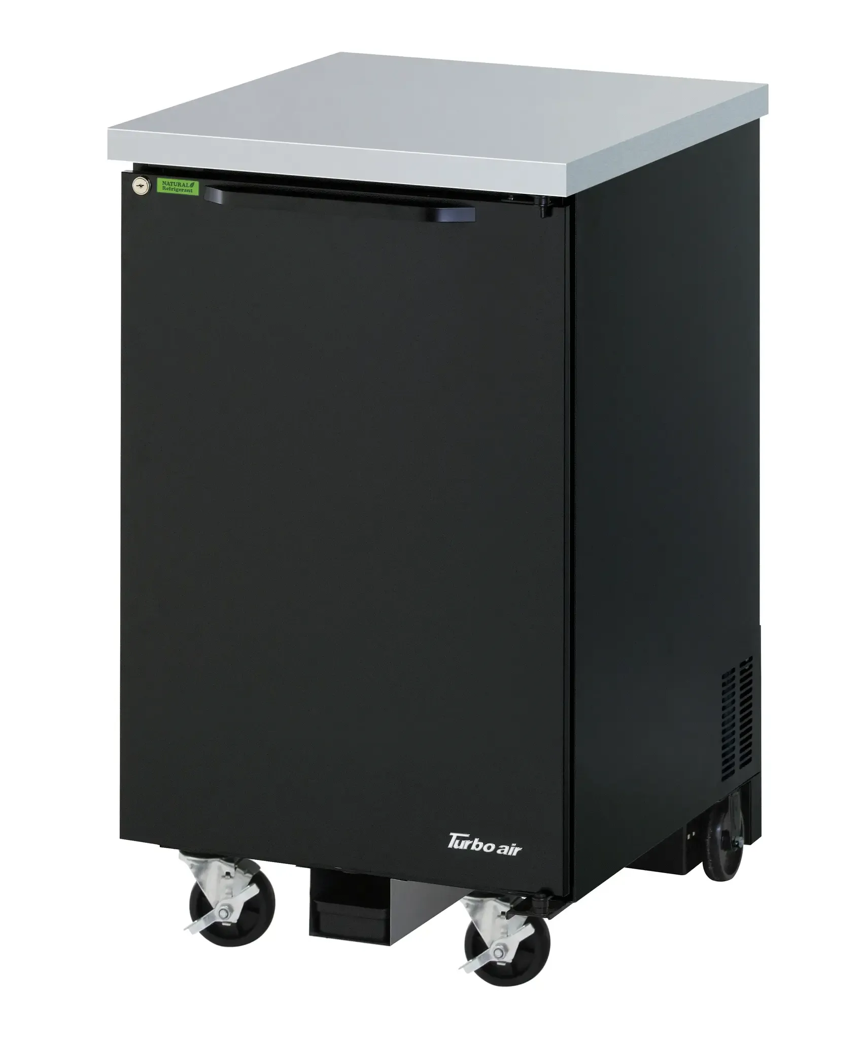 Cooking at its finest begins with the Turbo Air TBB-1SBD-N6 Back Bar Cabinet. This refrigerated unit is designed to meet the needs of commercial restaurants, offering a spacious one-section design with dimensions of 23.63" W x 32-1/8"D x 37-3/4"H. With a capacity of 7.76 cu.ft., this back bar cooler provides ample storage space for beverages and ingredients. The two PE coated adjustable shelves allow for easy organization and customization to fit your specific needs. The LED interior light illuminates the contents, making it easy to find what you're looking for. The stainless steel countertop and black laminated exterior give this unit a sleek and professional look, while the stainless steel door liners and interior floor ensure durability and easy cleaning. The R600a Hydrocarbon refrigerant and 1/8 HP compressor provide efficient cooling, while the lock on the door adds security. With its compact size and reliable performance, the Turbo Air TBB-1SBD-N6 Back Bar Cabinet is the perfect addition to any commercial restaurant.