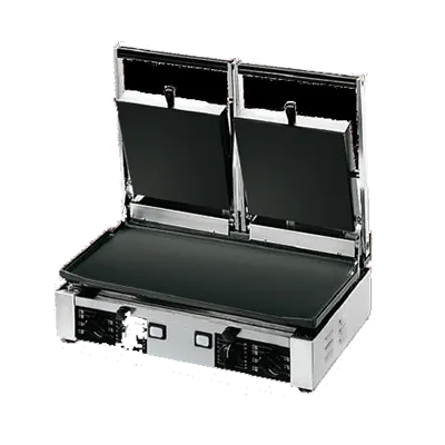 Create a Seamless Culinary Experience with the Univex PPRESS2F Sandwich/Panini Grill. This electric countertop grill is designed for commercial restaurant use, offering a 19.6" x 10" cooking surface and two standard hinged upper grills. The smooth cast iron plates ensure even heat distribution, while the adjustable temperature control allows you to cook your sandwiches and paninis to perfection, with a maximum temperature of 572°F. The built-in timers help you keep track of cooking times, and the stainless steel exterior adds durability and a sleek look to your kitchen. The Univex PPRESS2F also comes with a scraping brush for easy cleaning. With its high-quality construction and user-friendly manual controls, this sandwich/panini grill is a must-have for any restaurant looking to create delicious and satisfying meals for their customers.