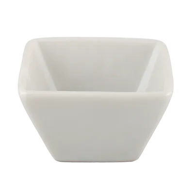 Enhance your dining setting effortlessly with Vertex China's ARG-119 Ramekin/Sauce Cup. This versatile and durable china piece is a must-have for any commercial restaurant. Its 1 oz. capacity and square shape make it ideal for presenting small, delectable treats to your customers. The scratch-resistant and bright white design ensures that this ramekin will withstand the rigors of a busy kitchen while maintaining its pristine appearance. It is also microwave and dishwasher safe, allowing for easy reheating and cleaning. The rolled edge adds a touch of elegance, while the Universal Signature Collection guarantees its authenticity and quality. Elevate your culinary creations with the ARG-119 Ramekin/Sauce Cup from Vertex China.