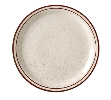 Transform your dining setting seamlessly with the Vertex China, CRV-9 Plate. This round, narrow rim plate is designed to elevate your restaurant's presentation. Made from vitrified china, it is both microwave and dishwasher safe, ensuring convenience and durability in a busy commercial kitchen. The brown speckled design adds a touch of rustic charm, while the double band detail enhances the plate's elegance. With a diameter of 9-1/2 inches, it provides ample space for showcasing your culinary creations. The Caravan Collection from Vertex China offers better value, making this plate a cost-effective choice for restaurants. Whether you're serving appetizers, entrees, or desserts, the Vertex China, CRV-9 Plate is the perfect addition to your restaurant's tableware collection.